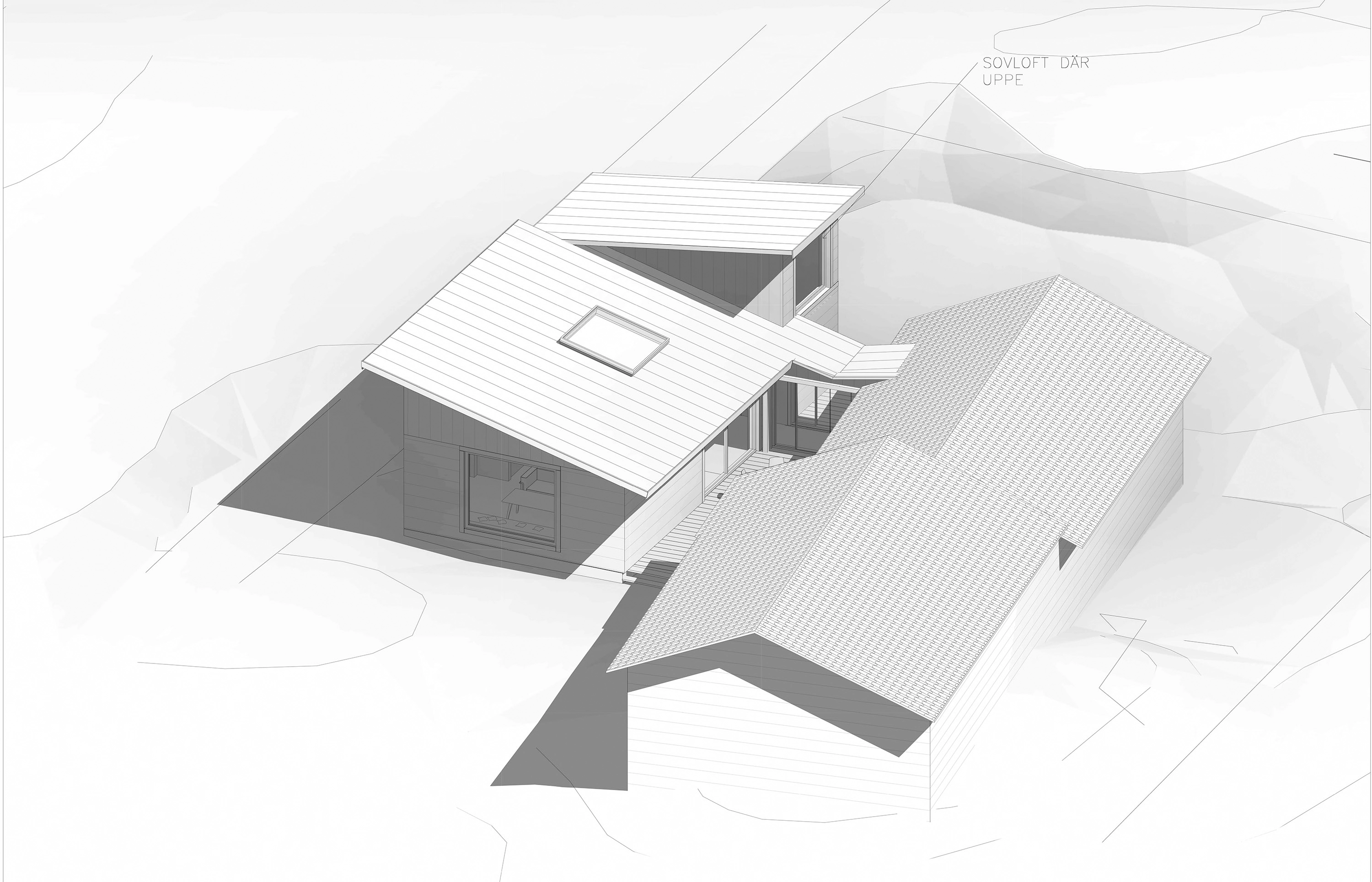 tagna ur samma palett. Byggnadens volym är anpassad till topografin som